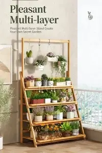 Courtyard, Balcony, Freestanding Small Flower Stand Nanmu Bamboo Material (Plant not included)